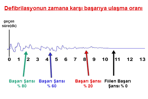 Şekilde görüldüğü üzere her geçen dakikada yaşamda kalma şansı azalmaktadır. 10.dakikadan sonra araştırmalara göre hayatta kalma şansı sıfıra yakındır.